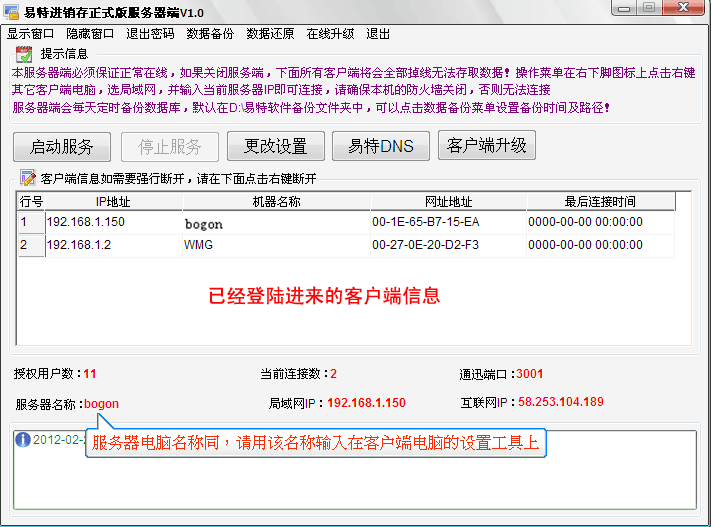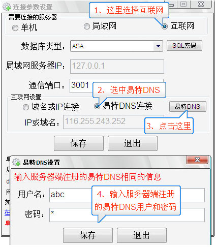 使用易特系列產品網絡版,需要進行設置,軟件支持局域網,互聯網同時連接,以便在出差,分公司、連鎖店之間通過互聯網連接